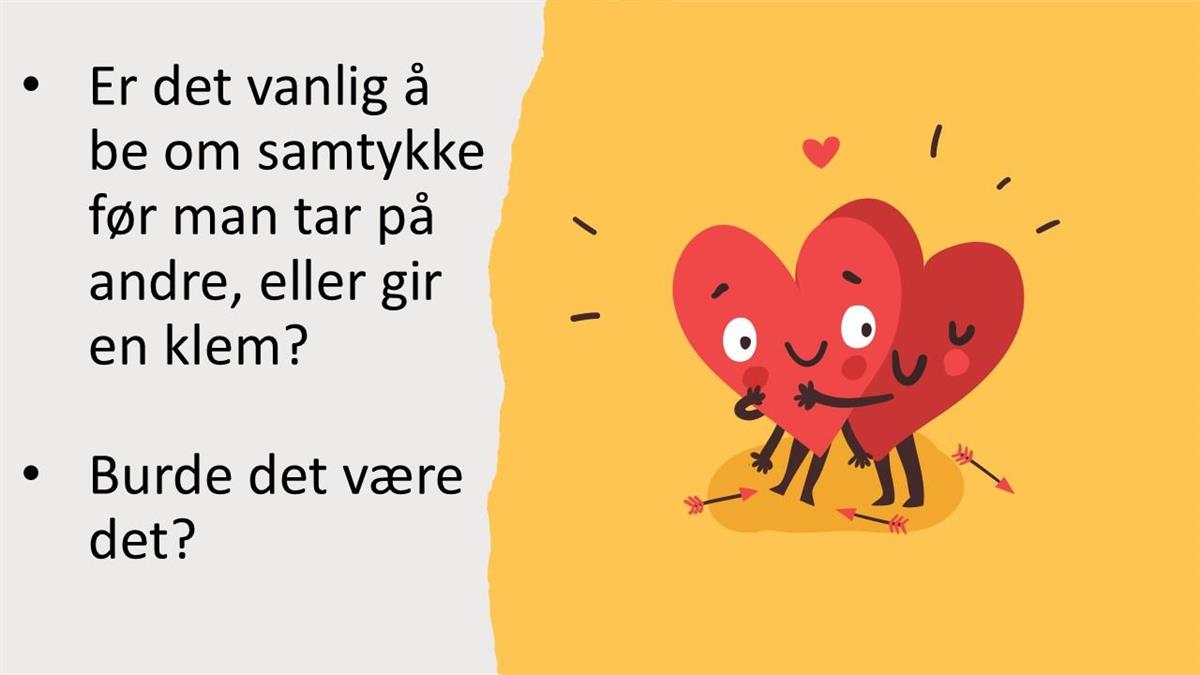 - Legg denne undervisningsøkta til en time der elever har mulighet til å snakke med voksne etterpå. Altså ikke siste skoletime eller en fredag. Vær to voksne i klassen om mulig, og informer helsesykepleier på forhånd om når dere skal ha denne timen i klassen.