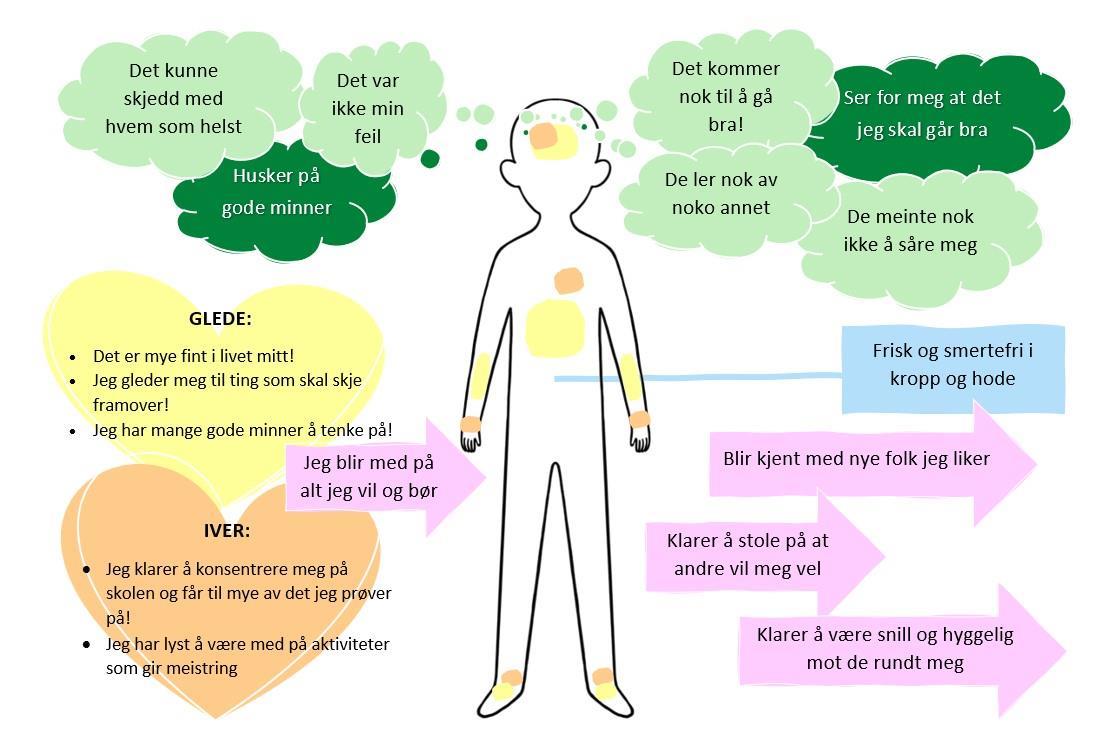 Vi har forsøkt å samle og utforme et brett spekter av mestringsverktøy å prøve og å velge mellom. Mellom anna anbefaler vi å introdusere, prøve, og bruke mestringsverktøy der vi bruker pusten, kroppen og sansene for å hjelpe. Det er flere grunner til det. Når mennesker har opplevd svært vonde ting som har satt spor også i kroppen, er det ikke alltid mulig å få til endringer bare gjennom å snakke eller tenke. Kroppen sliter etter det som har skjedd, og kroppen kan hjelpes til å få det bedre gjennom måter å puste på, bevege seg på, fokusere på kroppen på, gjennom å stimulere ulike sanser eller gjennom andre fysiske aktiviteter.