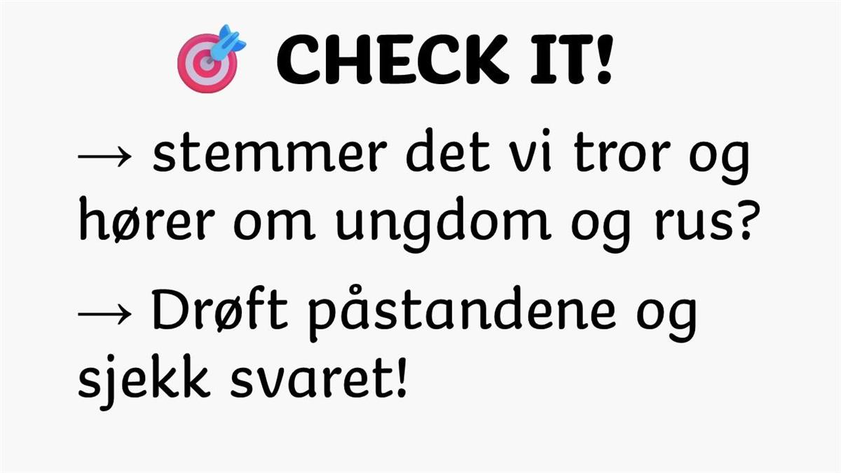 Etter flere år med relativt lite narkotika blant ungdom har det de siste årene vært rapportert om en økning. Mange unge har oppfatning av at narkotika ikke er farlig, og at det snart blir lovlig å bruke. Det ungdommene nok ikke vet like godt, er at all narkotika kan være farlig for noen, og at man på forhånd ikke kan vite hvem som får de mest negative konsekvensene. De er nok heller ikke alltid klar over at de unge hjernene er mest utsatt for skadevirkninger av narkotiske midler. Mange vet heller ikke at selv de mest «harmløse» stoffene ofte har negativ effekt på læring og skoleprestasjoner, og medfører risiko for avhengighetsproblematikk.